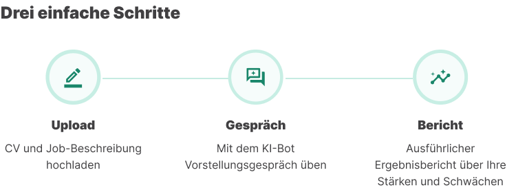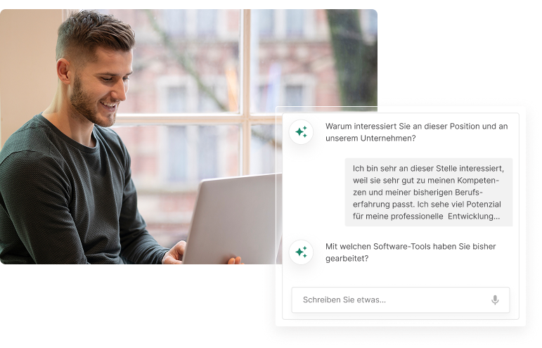 Unser KI-Chatbot nutzt »Natural Language Processing« (NLP), um Ihren Kommunikationsstil, Ihre berufliche Eignung und Ihr Engagement zu bewerten, und sicherzustellen, dass Sie auf jedes Vorstellungsgesprächsszenario bestens vorbereitet sind.