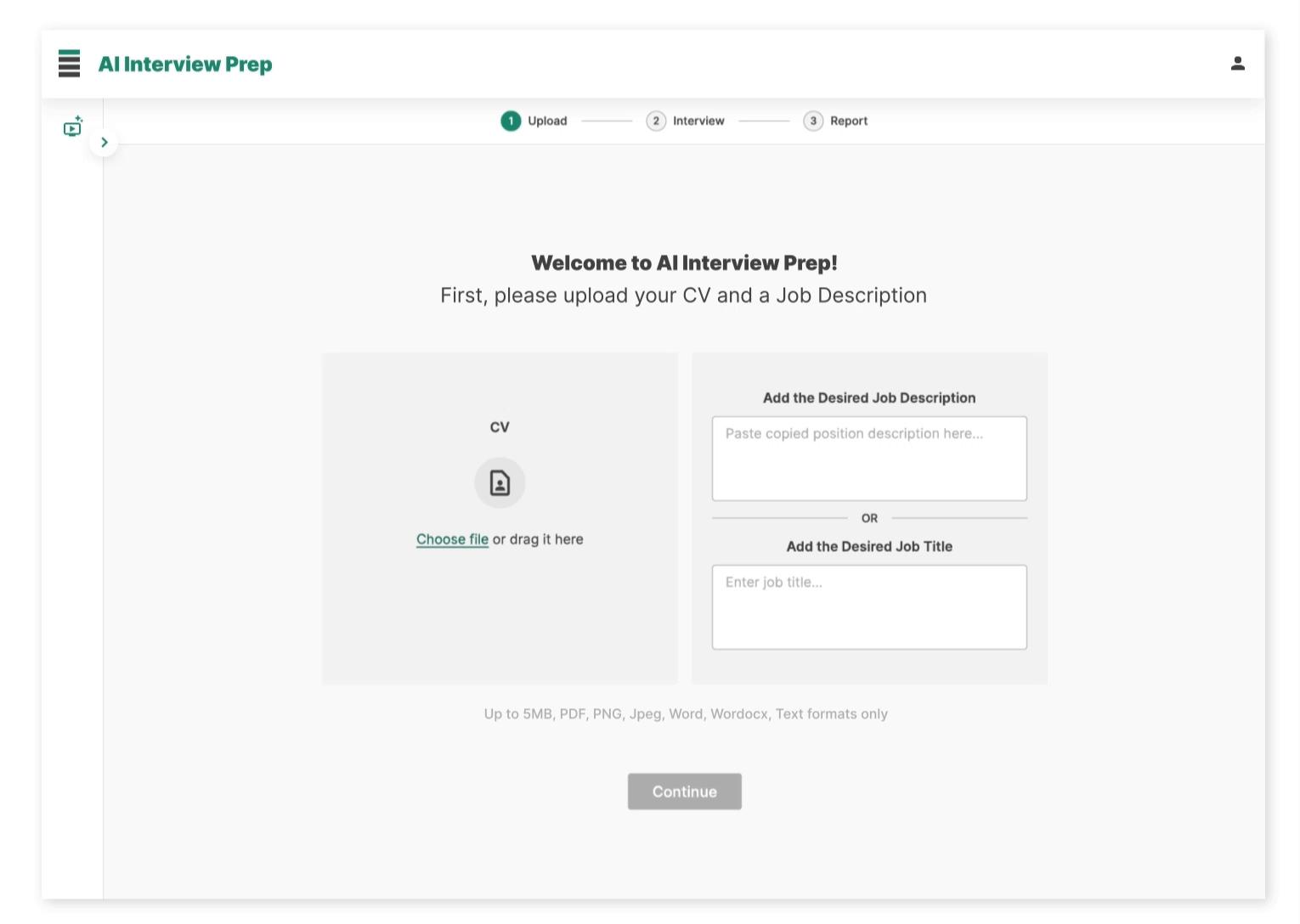 Laden Sie Ihren Lebenslauf hoch, geben Sie eine kurze Beschreibung Ihres Job-Profils ein und die KI generiert automatisch maßgeschneiderte Fragen für das Vorstellungsgespräch.
